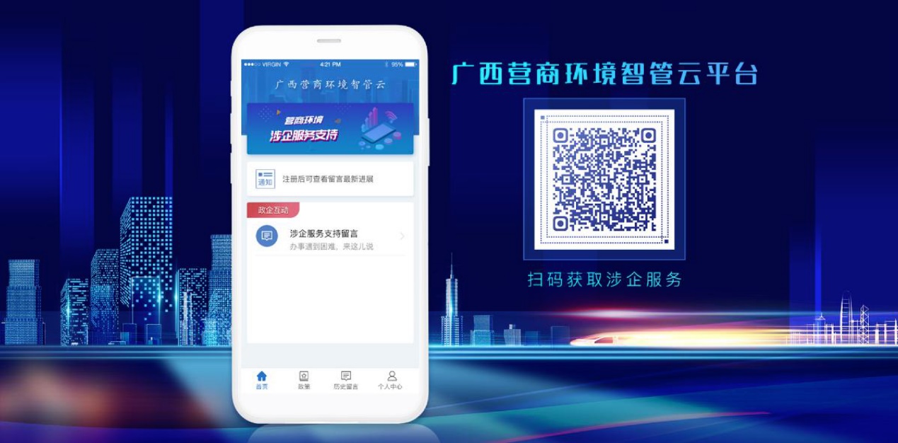使用手机和其他移动端的微信、支付宝和浏览器等应用,打开扫一扫,扫描二维码进入广西营商环境智管云平台诉求填报页面。